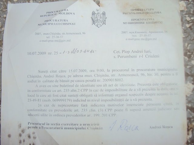 CITATIE  PROCURATURA REPUBLICII MOLDOVA