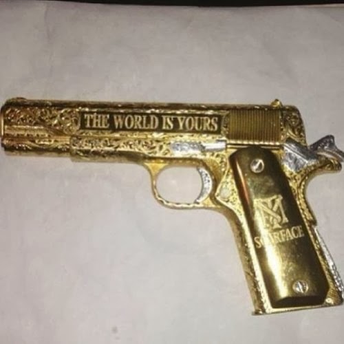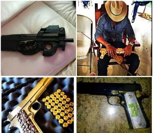 It seems as though part of being a big time drug lord / dealer is equipping yourself with gold-plated guns. I don’t get it really, ok, well actually I do. What I gather from this phenomenon is that drug dealers are by nature, insecure, therefore, they need these shiny gold-plated guns to make up for their rather smallish dicks. Am I right? Why draw this kind of attention to yourself. It’s the greed and insecurity that gets them caught. A smart drug dealer, if there is such a thing, would know when to quit (IDK maybe when he has socked away a few million, you know, enough to live a comfortable yet modest life until death) but most of them are stupid and have to buy gold-plated guns, tigers and expensive cars, thereby drawing the envy of others and the attention of authorities. All that being said, here are some drug dealer guns…