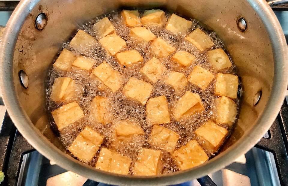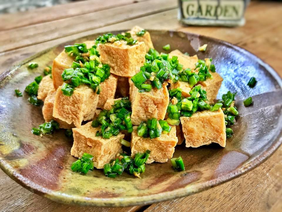 This crispy fried tofu is simple and yet tasty to have as an appetizer. The bite-size fried tofu has a natural sweetness and tender center; the beautiful golden brown skin is full of hearty savory notes.