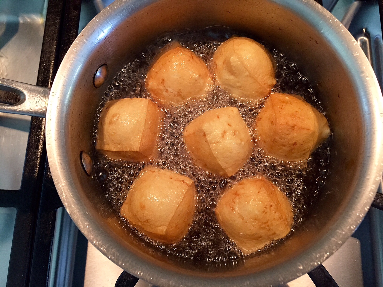 Heat oil for deep frying in small saucepan on high (oil should fill pan to at least 2 inches). To test if your oil is hot enough, dip the tip of a chopstick into the oil.  If it begins to sizzle then the oil is ready for frying.