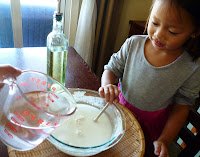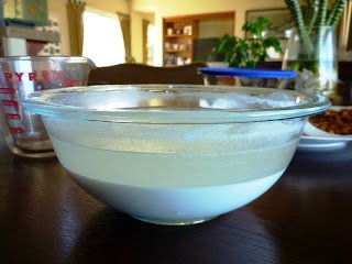 Pour the clear water to another bowl or a measurement cup. Make sure to measure the amount of water you poured out. Discard the water. Place back the same amount of clean water to the batter bowl. This process is to eliminate the smell of old flour.