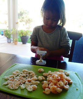 Bring 1 1/2 cups of water to boil. Add shrimp and cook for about 5 minutes. Remove shrimps then peel and reserve the shrimps broth.