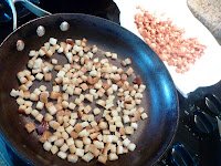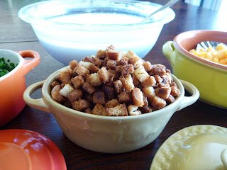 3 Slices Sandwiches or Bread cut into small squares, for croutons or