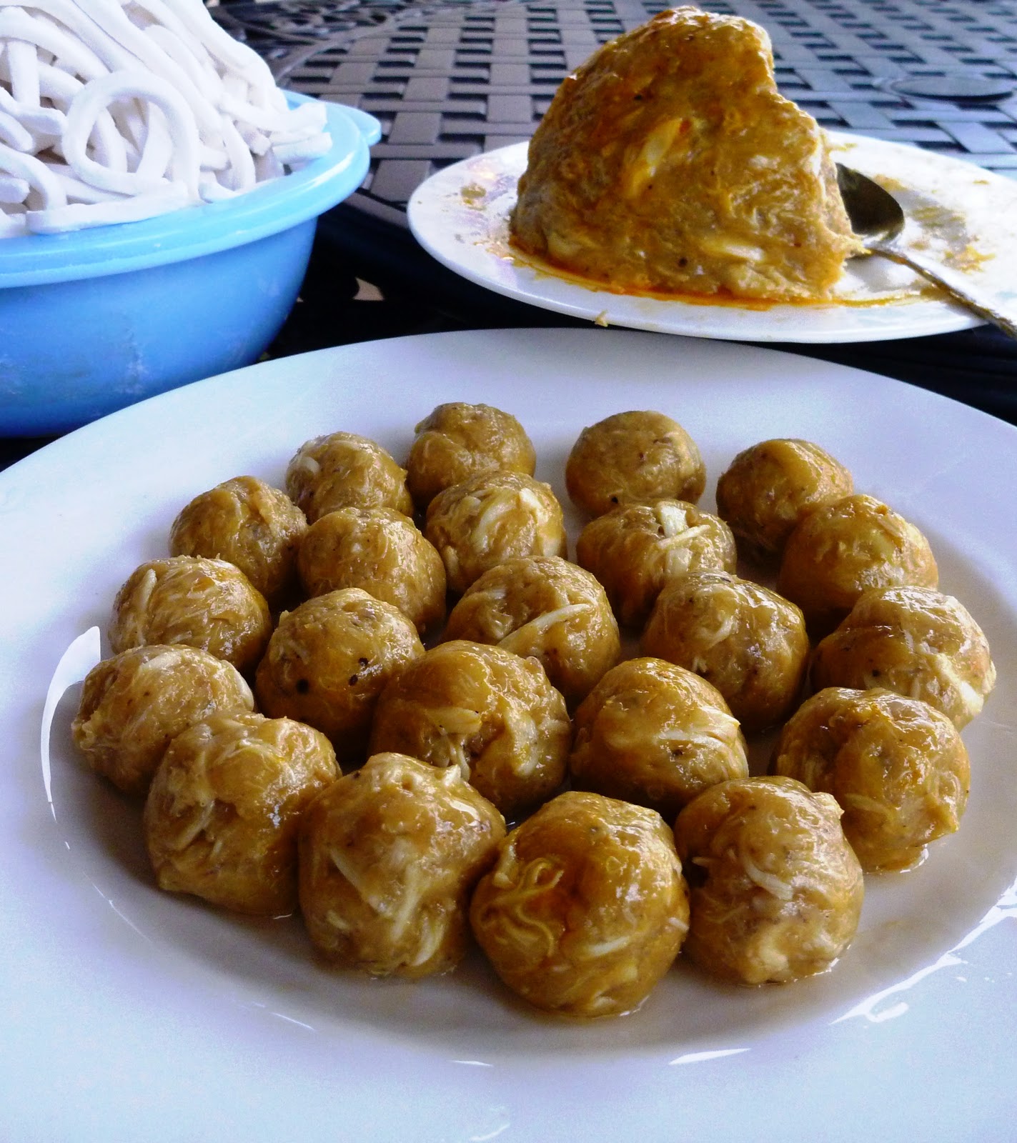 Remove the shrimp paste mixture from the fridge or freezer. Use a spoon to scoop the shrimp paste and make it into balls. To avoid the shrimp paste from sticking on our hands, wet your hands and a spoon with water. Place shrimp ball into the boiling broth.