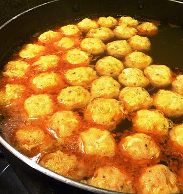 Remove the shrimp paste mixture from the fridge or freezer. Use a spoon to scoop the shrimp paste and make it into balls. To avoid the shrimp paste from sticking on our hands, wet your hands and a spoon with water. Place shrimp ball into the boiling broth.