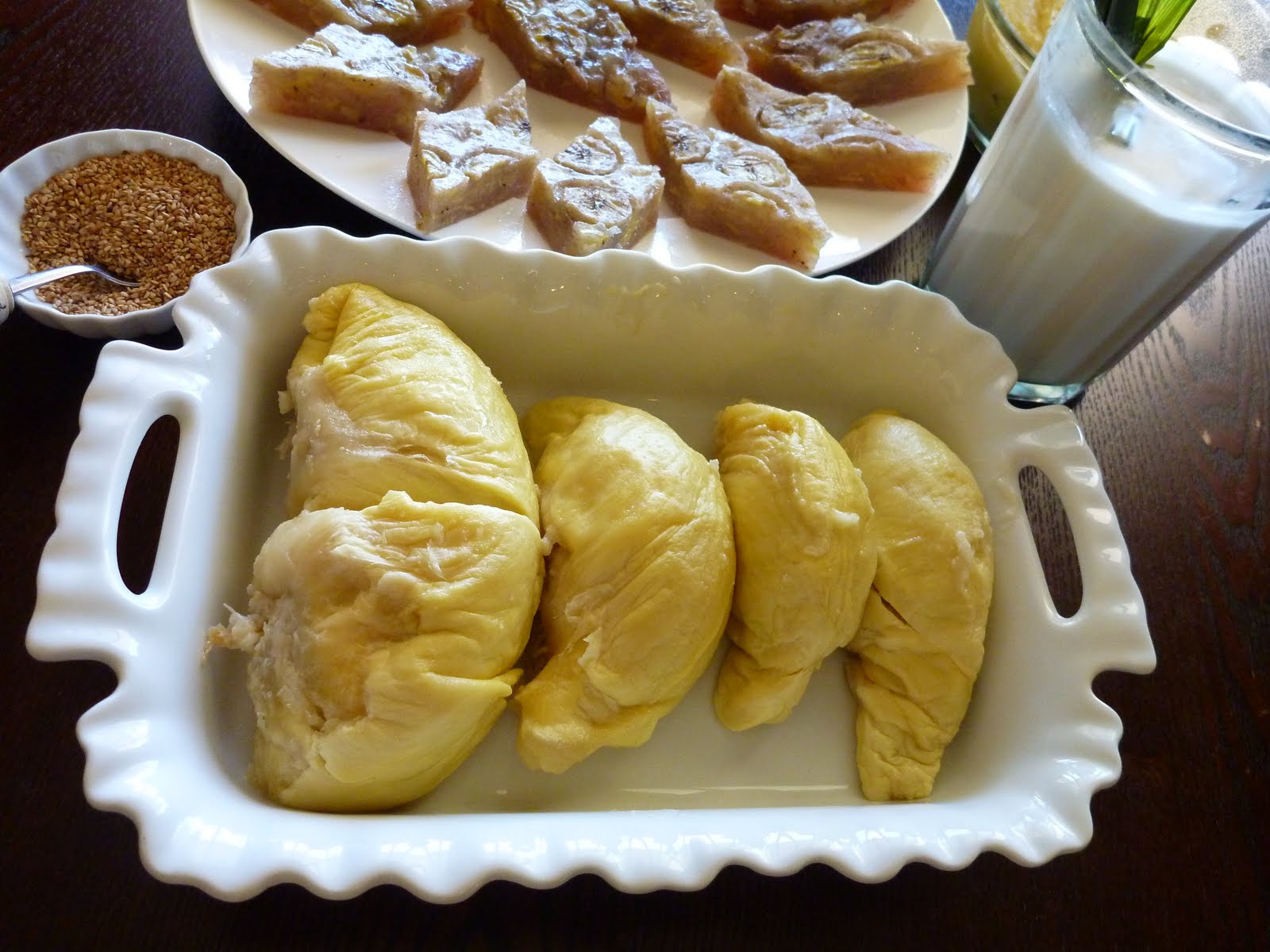 I love everything in it especially anything made out of banana. I love the smell of durian which is truly an acquired taste (certainly not for the faint of hearts) for its pugent aroma. Even Andrew Zimmern from Bizarre Foods who can chow down on pig brains, bull testicles and just about everything in between cannot even stand the smell of durian; he tried it twice, but had to succumb to its offensive odor. But I love it!
