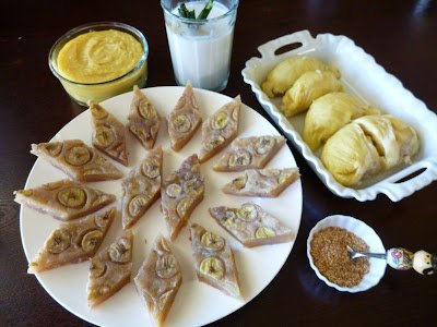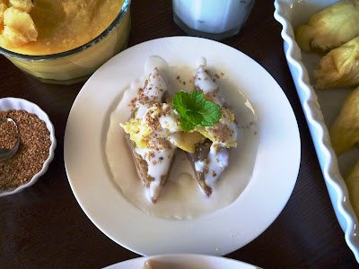 I served Banana Cake with Coconut Sauce to my family at 10:30 pm. It was a great dessert . . . to usher in the sweet dreams.