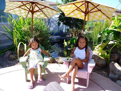 Enjoyed Banana Cake with Coconut Sauce by the Koi pond.
