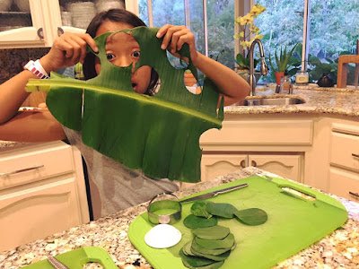 Forming Dough for Fried Cakes – roll each piece of dough into a smooth ball in the palms of your hands. Place it on a banana leaf circle and flatten into a 1/4 inch flat round.
