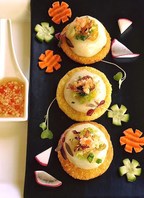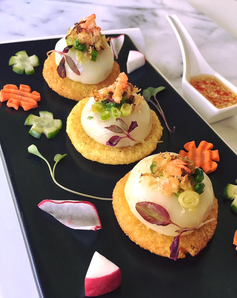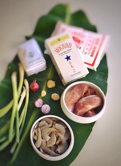 For an example, to execute the photo of Bánh Ít Kẹp Bánh Ram, I had to make a trip to stores to purchase a black plate to contrast with the soft white steamed and crispy golden fried dumplings; ingredients such as micro rainbow mix, and radish for visual contrast. After shooting over 100 photos, I ended up settling with a few of the best ones for this recipe. Now onto the recipe . . .