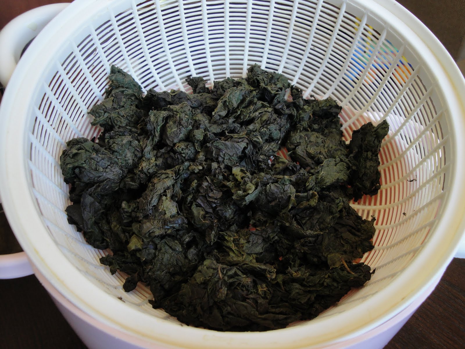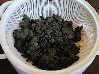 Wash Gai leaves and removed the hard line in the middle of each leaf.  Bring it to boil for about 15 minutes.  Drain it and squeeze out the water.  Put gai leaves and ginger in a blender and blend it with a little bit of disolved sugar until the texture is super smooth.  Set it aside.
