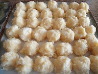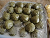 In a mixing bowl, mix well together  flour, gai paste, syrup and vanilla extract.  Kneed if for about 10 minutes until dough is soft and it doesn’t stick to your hands or the mixing bowl. If during the kneeding process, dough is still dry, add a little bit more of water in the dough and kneed it again.  Divide dough into 40 balls.