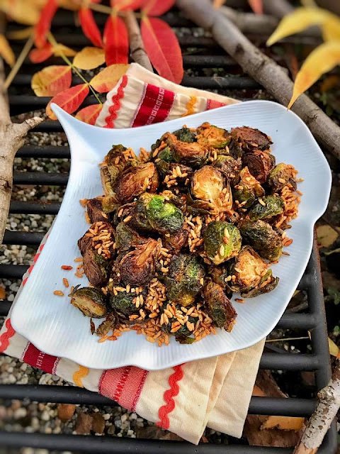 Sit back, relax and enjoyed this delicious, crispy fried brussels sprouts with popped rice.