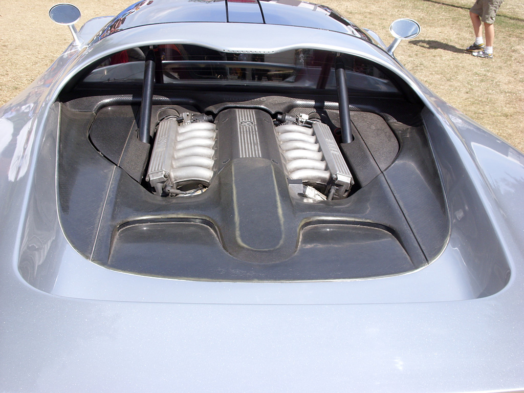 The engine is located substantially in the middle of the car. The Nazca was designed as a propulsion and domed roof is reminiscent of certain sketches Bugatti EB 110 as.