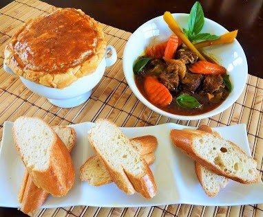 A few weeks ago, I had an opportunity to cook for a group of 20 who came to our house for bible study. I cooked a 16 quart pot of bò kho and served it with bread and noodle. As I still have quite a few puff pastry sheets left in my freezer, I decided to use them to make a few pot beef stew (similar to Pot Pie). My girls loved breaking down the flaky and light puff pastry crust and dipping it in the beef stew sauce. It was a good sign that an entire big pot of stew was quickly consumed. It was a good thing that I made a bunch of Pate Chauds to make sure my guests leave with satisfied tummies.
