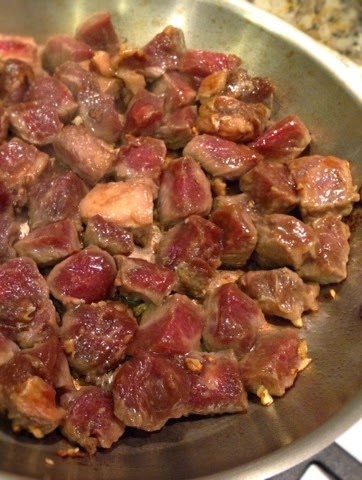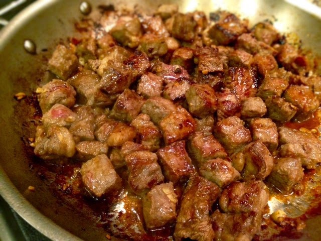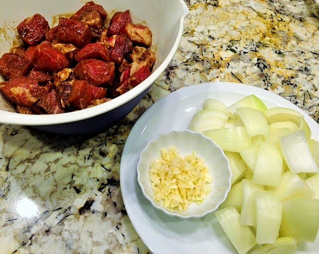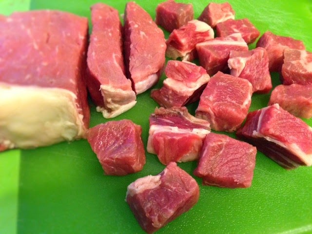 Cut beef into small, about 2/3 inch cubes. Set aside.