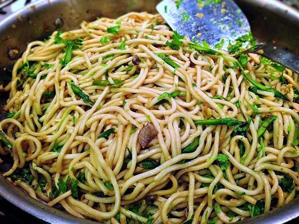 Saute for a couple of minutes then add the soy sauce mixture. Turn of heat. Mix in the noodles and finely chopped cilantro.