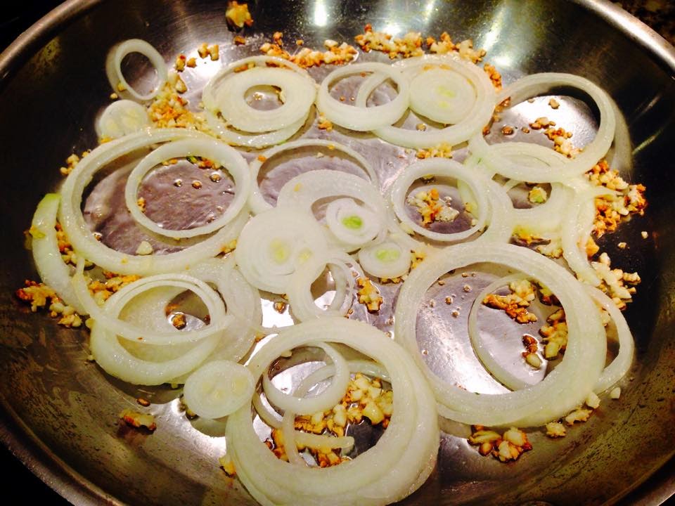Saute garlic and onion and use it as a garnish for the Bò Lúc Lắc noodle dish.