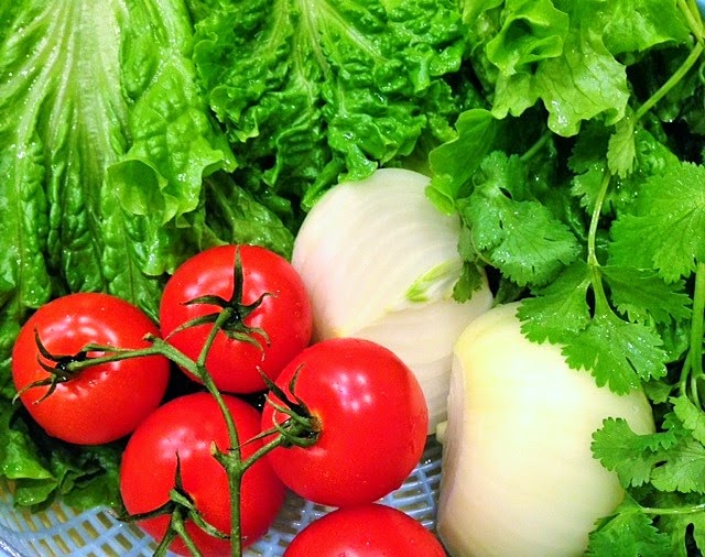 Mix beef and onion together. Place it on top of a vegetable serving plate. Serve on the side with a dipping salt mixture made with a dash of salt, ground black pepper and fresh lime juice.