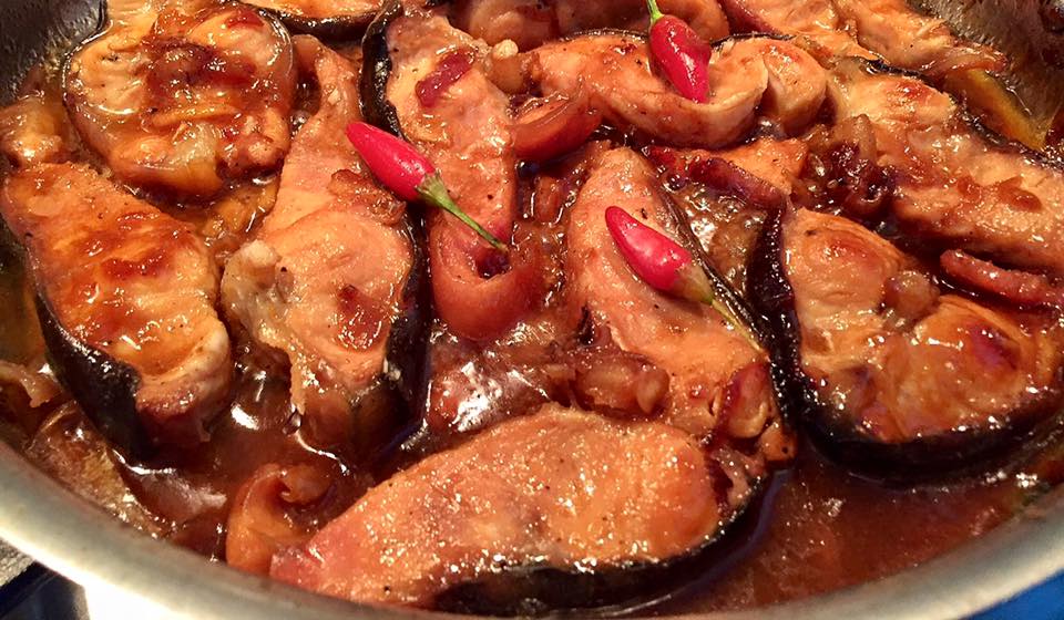 My girls and husband are huge fans of Cá Kho Tộ. It’s a joy for my husband to see the braised fish in the clay pot. It’s very appetizing. So when I braise a big size catfish, I would use a big shallow pan that would fit all the catfish steaks in a single layer. Once the braised fish is done, I serve it in a clay pot just the way he likes it.