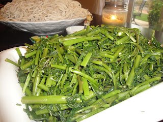 1 large bunch of Water Spinach, cleaned and cut about 3 inch lengths (use Cải Xanh/Mustard Greens if water spinach is not available)