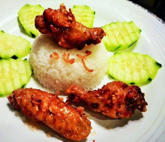 Place wings in a sauce skillet. Add fried garlic and shallot, and mix well.
