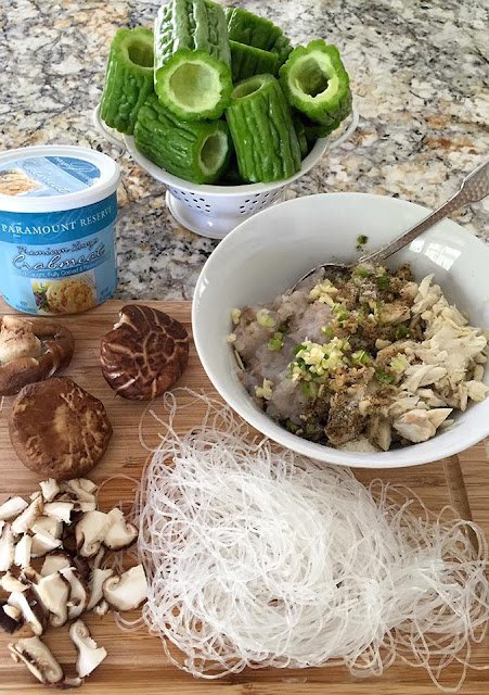 This stuffed bitter melon soup recipe below is cooked with the mixture of crab meat and fresh shrimps paste. Bitter melon tastes wonderfully when stuffed with ground pork, turkey, chicken, or shrimps, or both meat and shrimps. It’s a great meal on its own as a nourishing soup or can be served as a side dish to compliment your dinner.