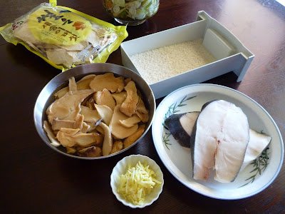 Fish Steak, Mushroom, Scallion and Ginger