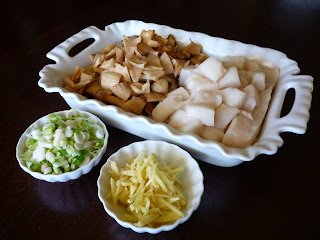 Wash mushroom and soak it in warm water for about 15 minutes or until soft. Slice the mushroom into any shapes and size you prefer. Keep the mushroom water for later use.