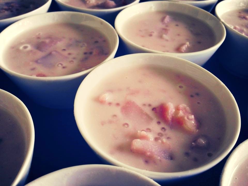 Taro coconut pudding is very quick and simple to prepare.  My kitchen is always filled with frozen pandan leaves, vanilla, coconut milk, tapioca pearl, and frozen taro. Anytime I have a last minute craving or guests, I know what I can do in just a short amount of time.