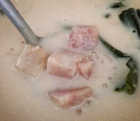 Add coconut milk, salt and sugar. My dessert is usually mild sweet since I don’t have a much of a sweet tooth, so adjust the sugar to your liking. Continue cooking for a couple more minutes.