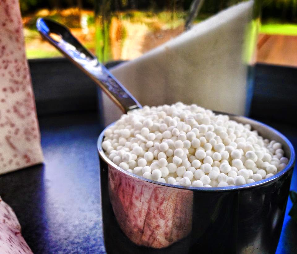 Turn off heat. Add vanilla powder. Stir it well. Let it sit for about 5 minutes or until tapioca completely translucent.