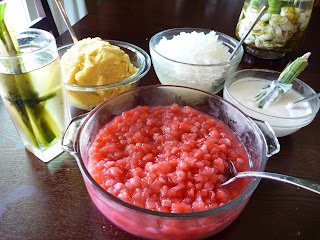 Both agar-agar and imitation Pomegranate go well with the starchy, mildly sweet mung bean paste, the   smooth  richness of coconut milk and the tangy sweetness of the syrup.  This chè is probably the least sweet and most refreshing of all of chè.