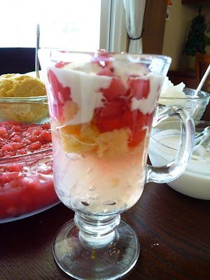 In a glass or a glass bowl, assemble a layer of suong sa, mung bean and a layer of pomegranate seeds.  Fill it with the syrup and coconut milk.   Top with shaved ice or without if all the ingredients are cold enough.  Stir to mix and enjoy!