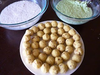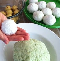 Add the remaining ingredients to the mung bean pot. Mix it well. Divide bean paste into 23 balls.