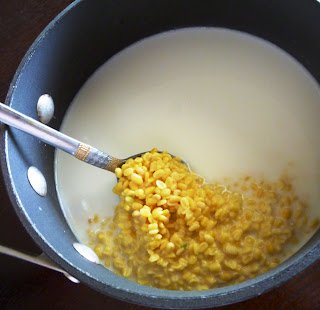Bring water to boil. Add salt, sugar and stir it well until dissovled.
