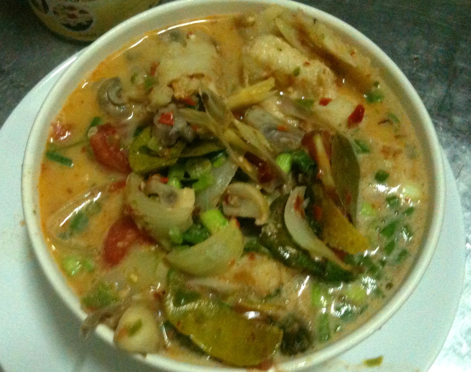 If you wonder how your tom yam soup arrives five minutes after you order it in Thailand, then this is how they do it. The Chang beers didn’t seem to slow them in the slightest, or the wolf hat. So two wonderful dishes in a few minutes. Eat your heart out Jammy Oliver – but then these were REAL chefs.