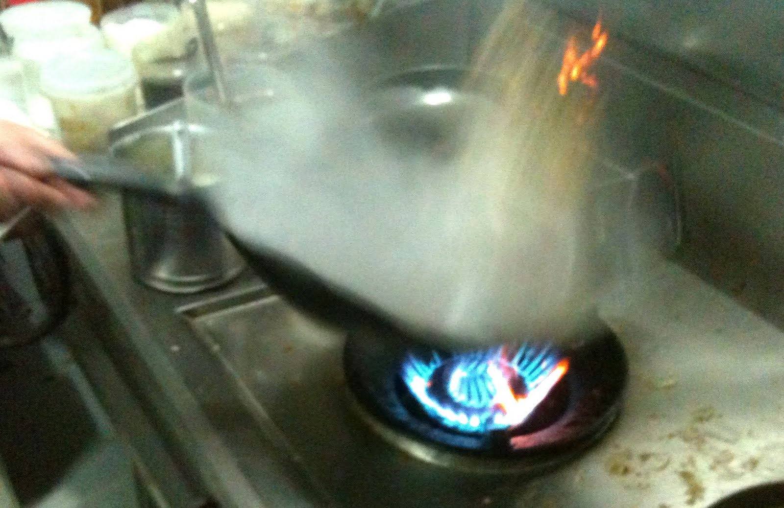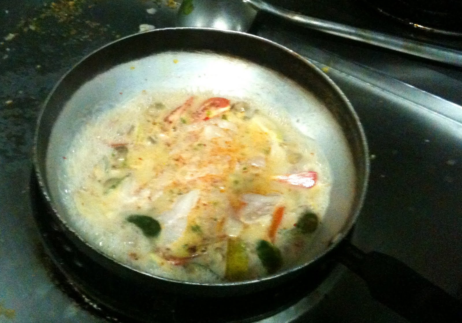 He let this bubble away and then put in the fish, which in that heat needed less than a minute to cook.