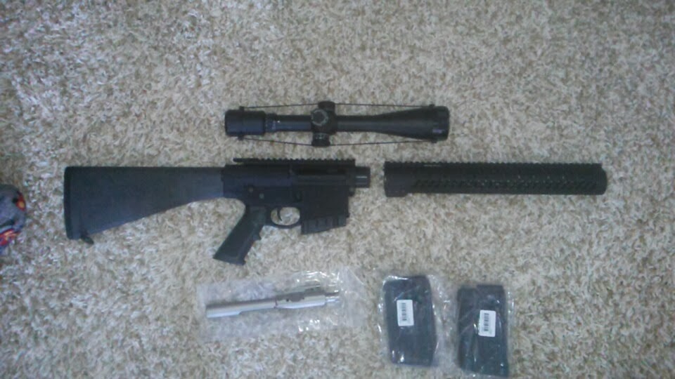 My good army buddy Sgt. Chris Betances is building a rather interesting AR15. The frame is for a .308 but this AR will shoot the 7mm-08 Remington. Interesting eh? I really have to visit him at Ft. Bragg after we both leave Korea so I can shoot it. Never seen one in that caliber before. Looks nice so far. He’s just waiting on the barrel.
