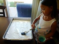 Prepare a full size baking tray with aluminum foil on the bottom. Brush oil on the aluminum tray. This process will make it easier to peel the foil off the rice after baking. Pour cooked rice into a baking tray. Use your hand or a spatula to flatten rice evenly on the tray about a little bit less than half inch. Keep your hand moist with oil to prevent rice from sticking on your hand.