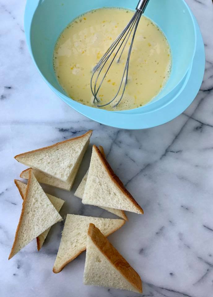 Take your pick at cutting the bread slices into half, quarter, or leave it as whole. If used French baguette, cut bread diagonally into at least 1 1/2-inch for extra-thick slice.