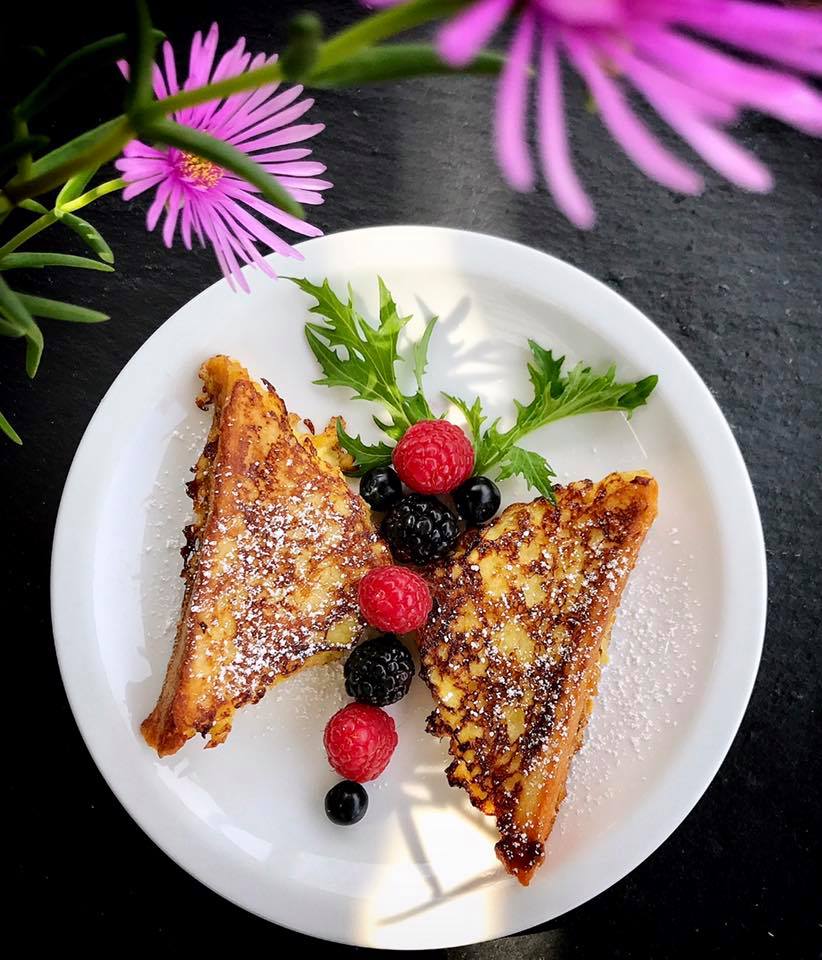 Sprinkle the toast with some powder sugar and serve with whipped butter, and assorted fruits. The buttery sweetness in this toast is just right for me so I don’t even need to douse it with syrup, and top with whipped butter, but you can indulge yourself.