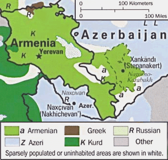 Armenii erau percepuţi ca aliaţi naturali ai ruşilor, pe când azeri ca un potenţial rival, Rusia a iniţiat campania de mutarea masivă a armenilor în regiunea Karbahului de Sus locuit de azeri în majoritate, acest proces de strămutare a fost făcut din cauza neîncrederii Rusiei în musulmani în special după războaiele turco-ruseşti din 1855-56 pentru a stabiliza controlul său asupra regiunii Rusia a încurajat schimburile de populaţii şi după războiul ruso-turc din 1877-1879 s-a făcut o strămutare mai largă a populaţiei armene din Imepriul Otoman şi Persan stabilidu-se în regiunile Caucazului dominate de ruşi.