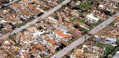 Every year between May and November, people in the eastern U.S. watch for hurricanes. These vast tropical storms in the Carribean Sea travel northwest, striking at the Caribbean islands and sometimes at the mainland of North America. One of the most terrible of these storms was Hurricane Andrew, which struck in August of 1992.
