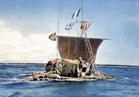 In the early 1940s, a Norwegian ethnographer called Thor Heyerdahl proposed that the peoples of Polynesia originated in the Americas rather than Asia. In order to test his theory, he decided to attempt to sail to Polynesia from Peru in a traditional Inca pae-pae raft. Heyerdahl and his team constructed the craft – called Kon-Tiki, the ancient name of the Inca sun god Viracocha – from balsa wood and other indigenous materials, basing the design on the descriptions and illustrations produced by the Spanish conquistadors.