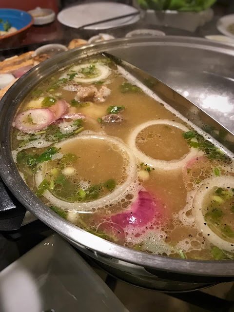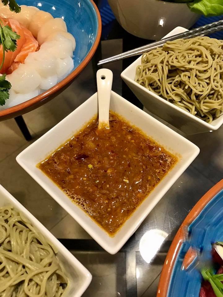 I was beginning to feel guilty for not being able to cook for the family. So the other night, I prepared a spontaneous meal to make up. We took a family trip to Nugget Market to get all the ingredients. Beef fondue in vinegar chicken broth, pan-fried beef and seafood were perfect to enjoy as the rain  was pouring outside. But I must say, the lemongrass shrimp paste sauce stole the show.