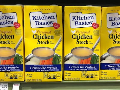 In a stockpot, add beef bone, beef fat from bone-in rib eye, garlic, onion, chicken stock (I used the brand above as they were on sale 2/$5), water, and bring it to a boil. Reduce heat and simmer for about 10 minutes. Add sugar, a tad of fish sauce, ground pepper, and vinegar. The broth should be balanced with a natural sweetness and slight tartness.