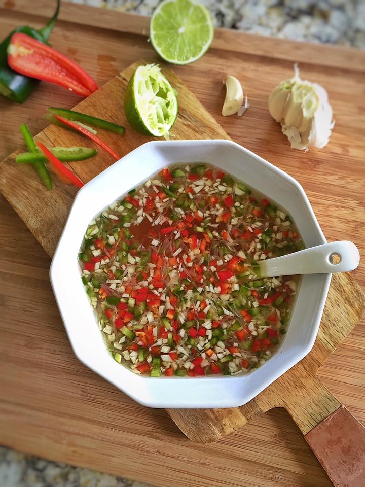My family and guests love the shrimp paste sauce when I prepare this kind of meal. But if you can’t take the aroma of the shrimp paste, fish sauce sauce,or  almond or peanut sauce would pair well too.