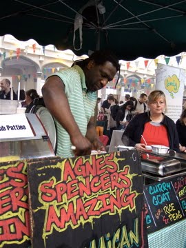But the best thing was the food you could eat at the festival which wasn’t the usual dreary fare of burgers and bangers but a huge choice of goodies from artisanal cheese toasties (again from Trethowans), to tasty chorizo and halloumi and rocket rolls from the Bristol Ethicurean (below) to Agnes Spencer’s Jamaican jerk chicken (above) which my friend Marti actually admitted was almost as good as hers.