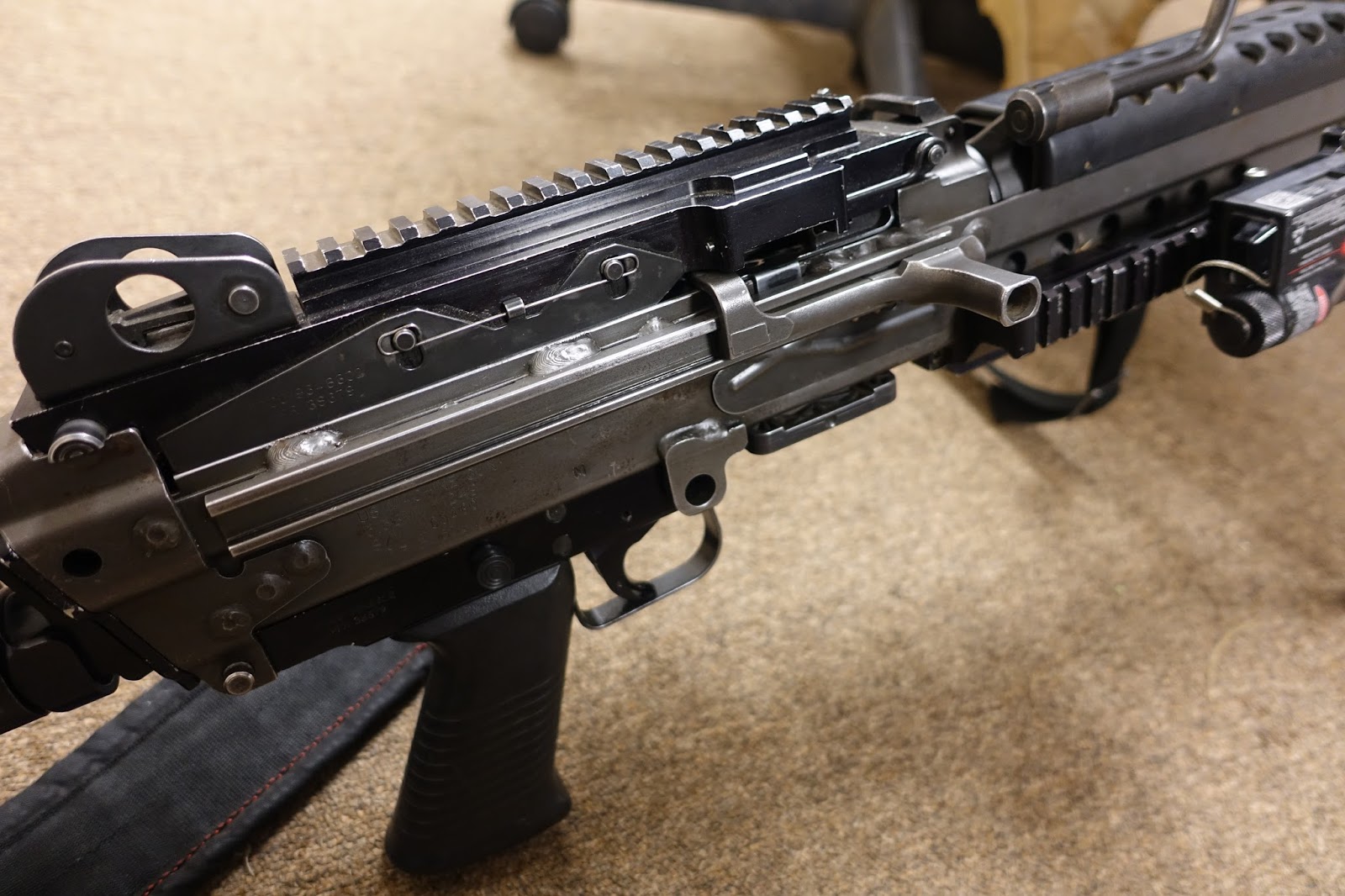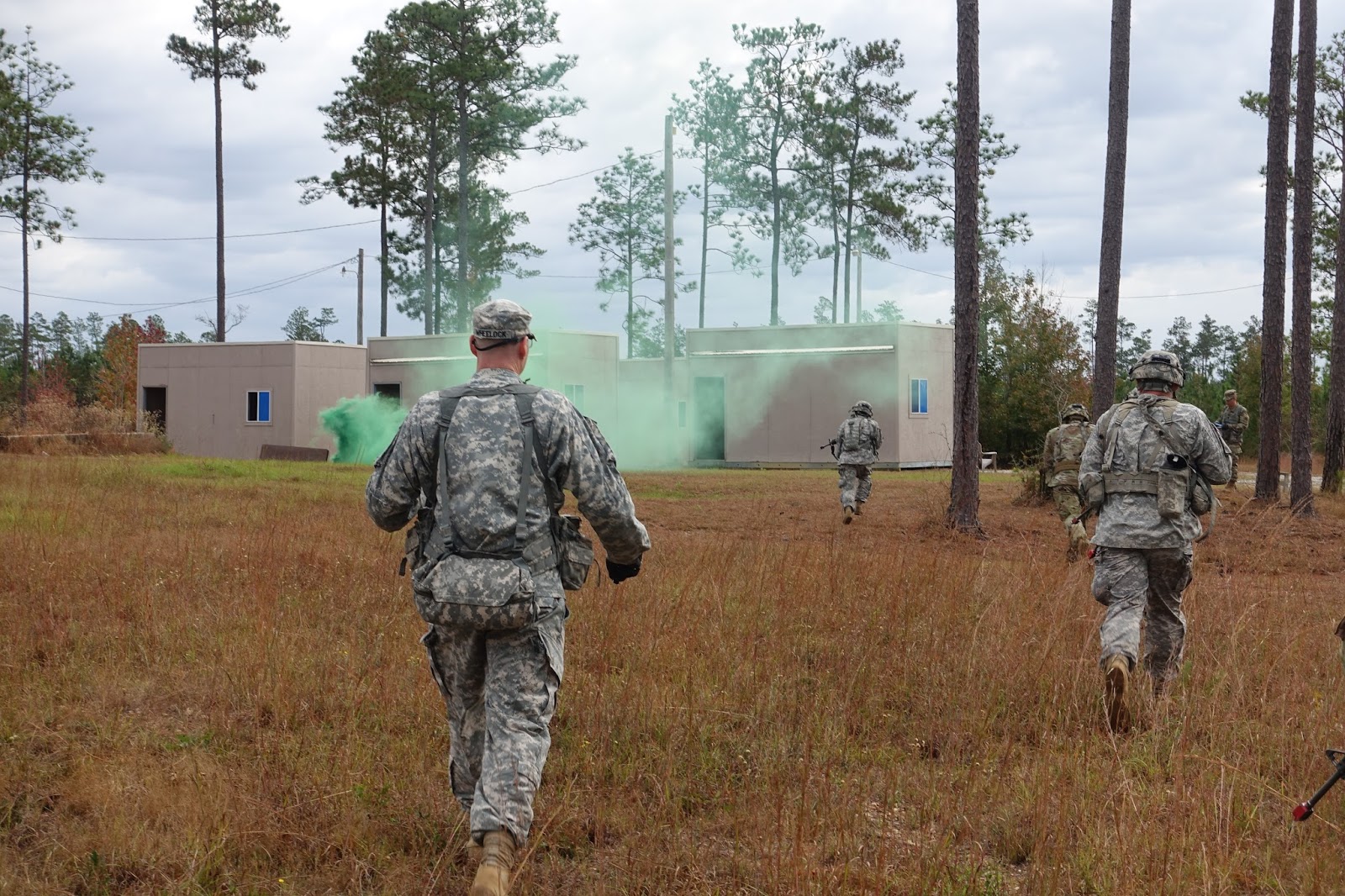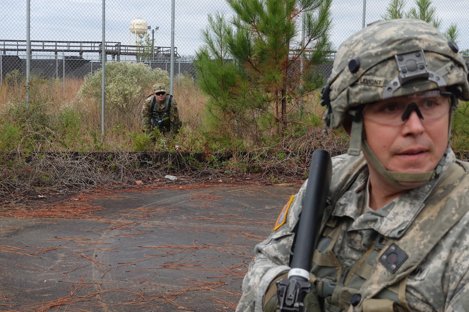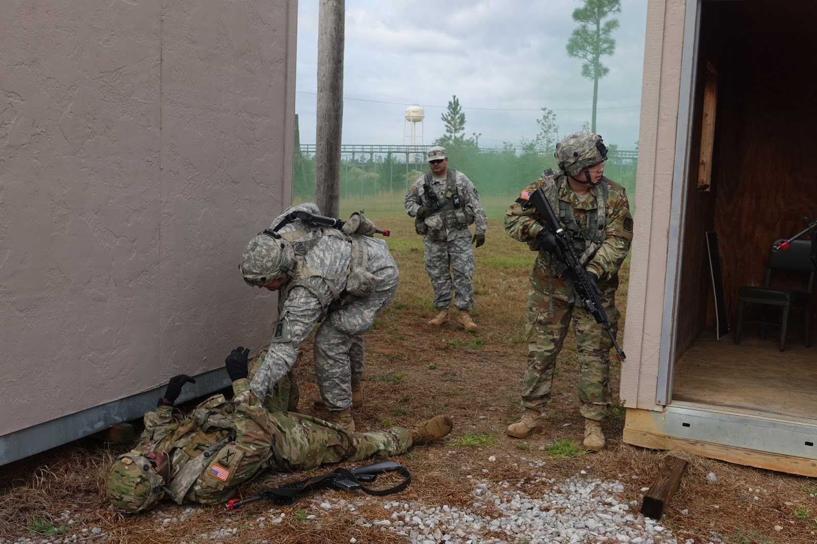 This soldier’s M16 rifle is fitted with a blank adapter (red).